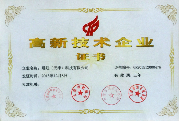 晨虹科技獲高新技術企業證書